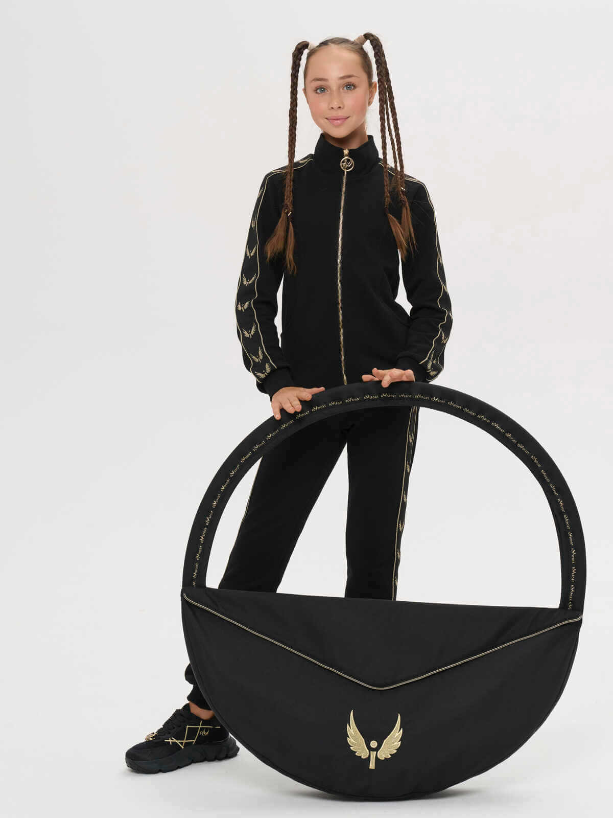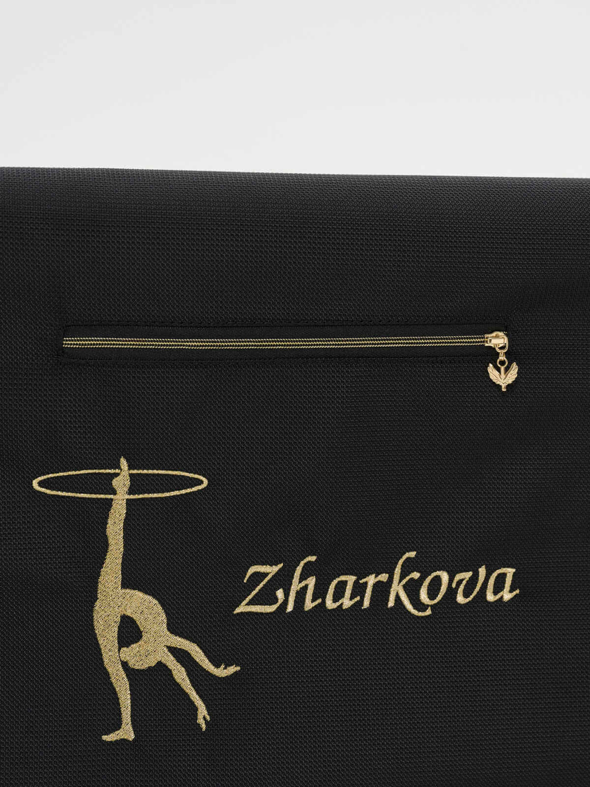Вышивка фирменного лого и гимнастки. Можно вышить фамилию и имя полностью.