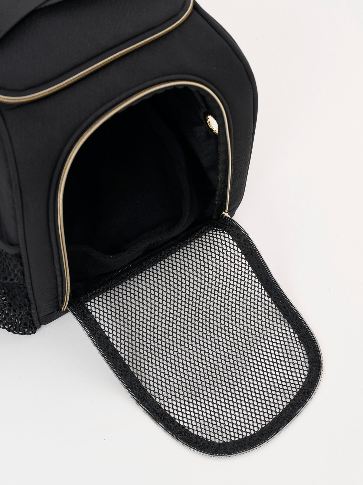 Сетчатые вставки по бокам и сверху гарантируют отличную вентиляцию и позволяют питомцу наблюдать за окружающим миром, снижая стресс от перемещения. Наплечный ремень равномерно распределяет нагрузку, так что даже длительные прогулки не станут обременительными для владельца.