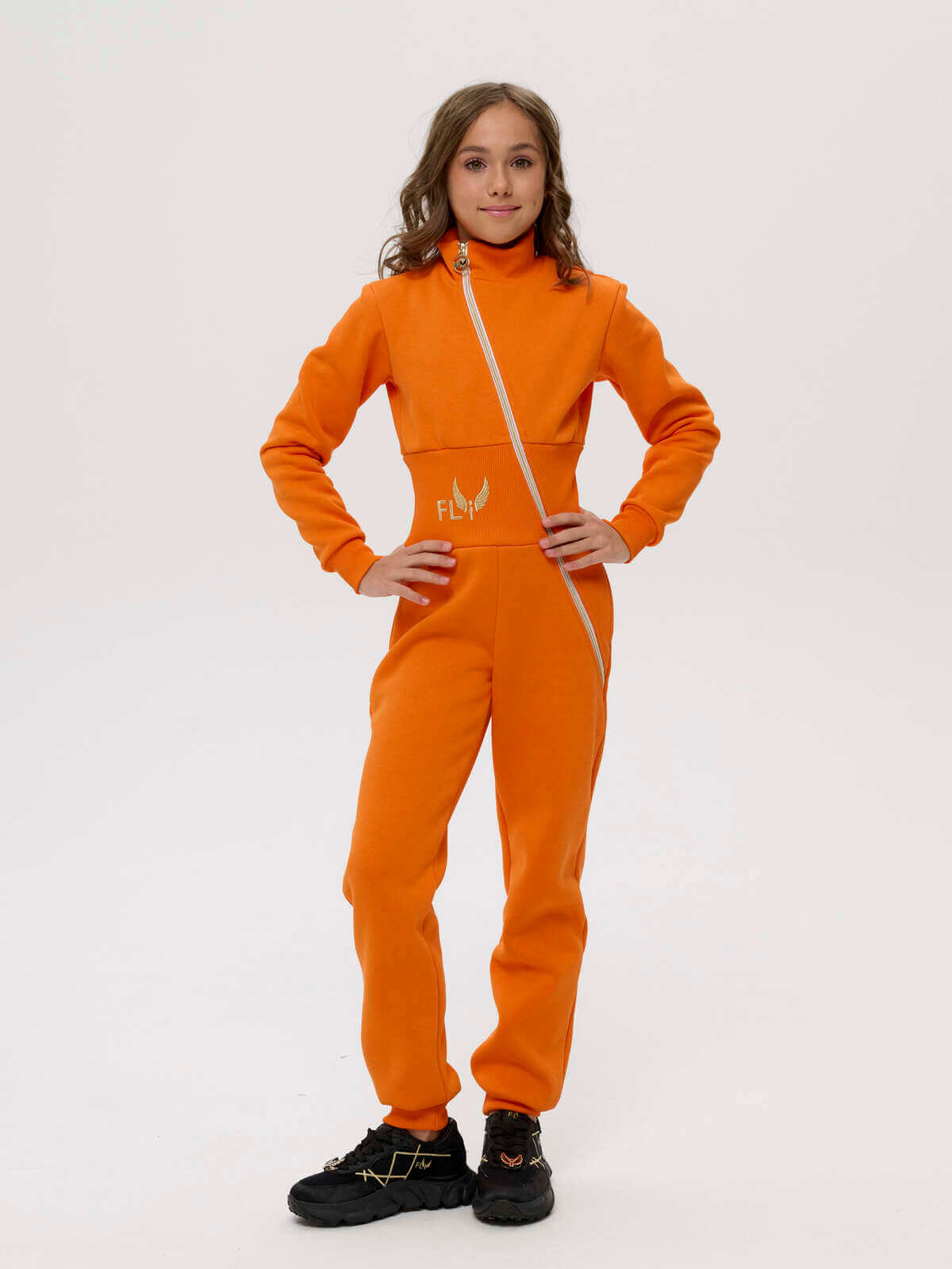 Цвета черный, оранжевый, красный, белый. Золотая вышивка крыльев на спине. Молния по диагонали. Только до роста 160 см! Вышивка фамилии и имени на груди. Утепленная модель, внутри начес.