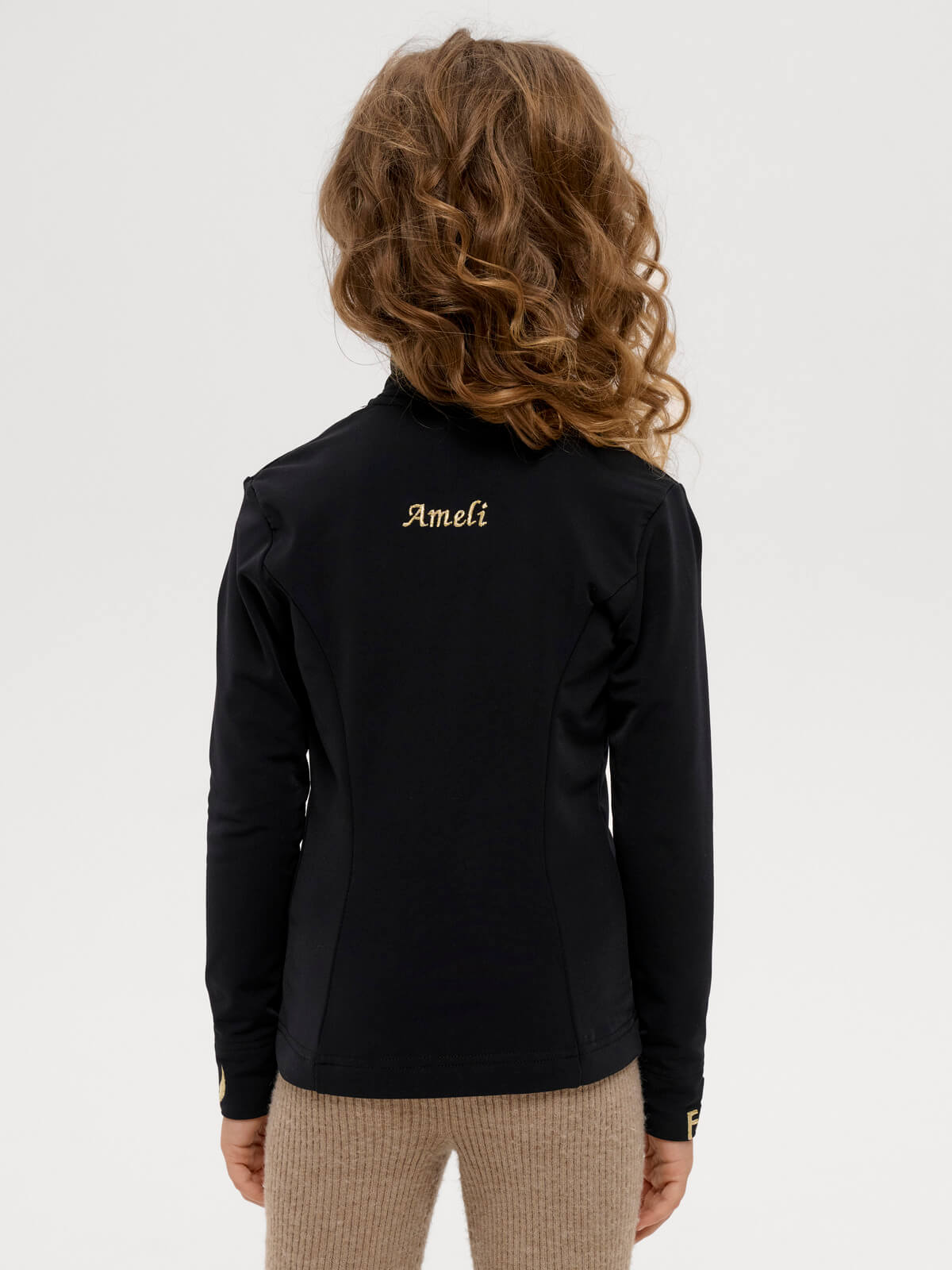 Цвет черный, на молнии, полуприлегающего силуэта. Рукав длинный, внизу рукава выполнена фирменная вышивка. Низ спинки слегка удлинен. Термо материл - высокая гигроскопичность, теплоизоляционные качества. Вышивка фамилии и имени на спине.